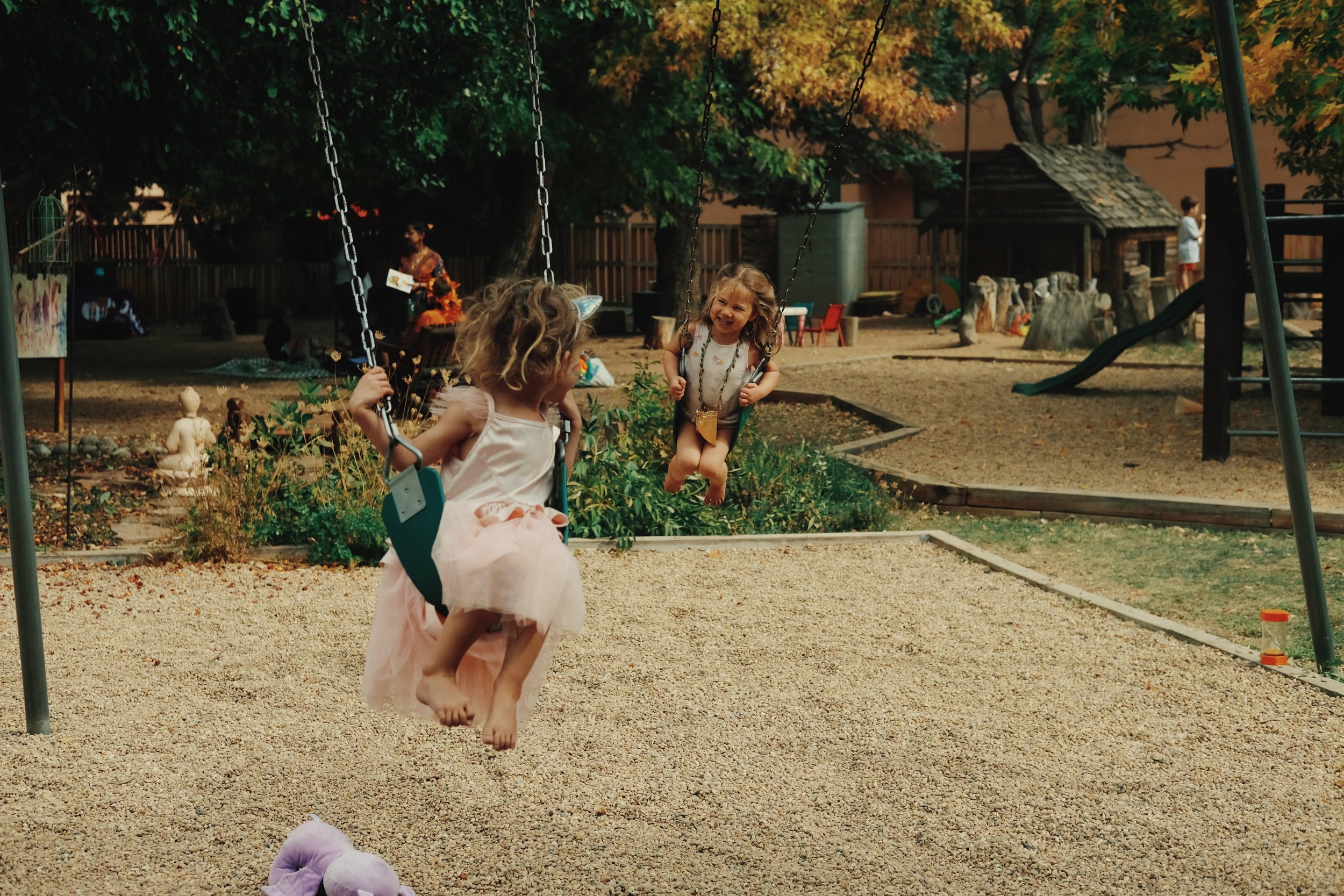 This is our younger preschool group. There are up to 14 children with 2-3 teachers, with most children staying for the afternoon (full day) as well. The Snow Lions' set of three connected classrooms introduces more complex activities and materials developmentally appropriate for this age group. Their large outdoor play yard is equipped with a "house", swings, slide and lookout tower, bikes and trikes, picnic tables, a huge sand pit and plenty of room to run. The Snow Lion children are in transition; they are no longer babies and the world and their relationships with each other are there for them to fully explore and discover.